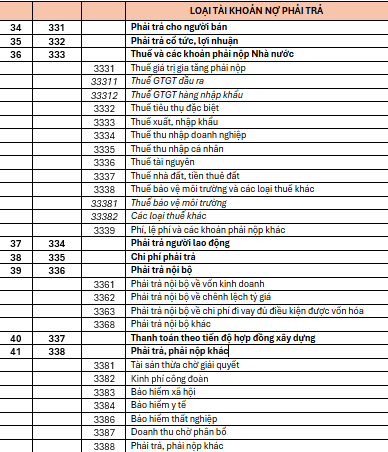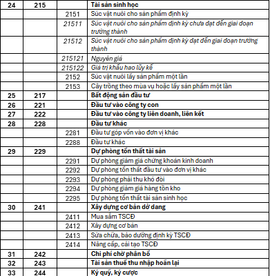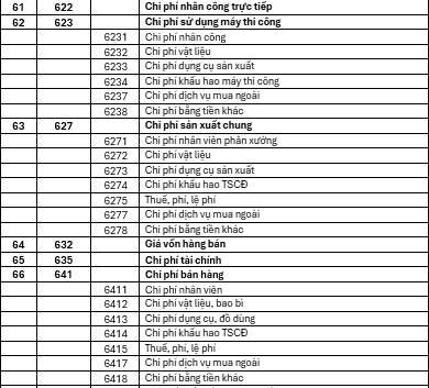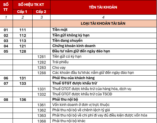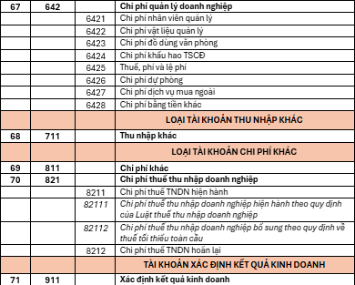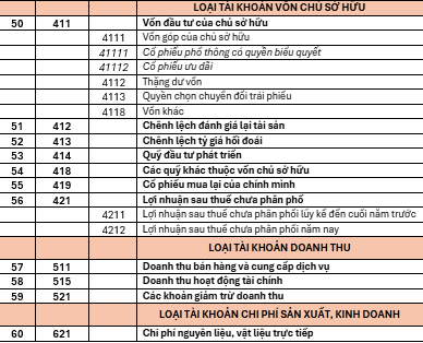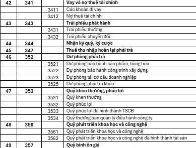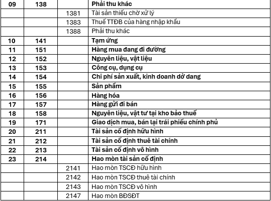 BẢNG HỆ THỐNG TÀI KHOẢN KẾ TOÁN DOANH NGHIỆP