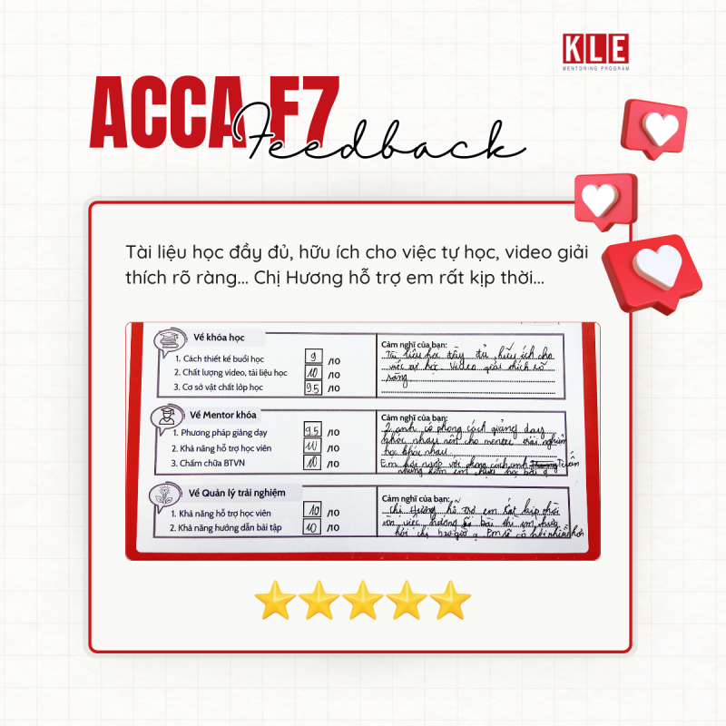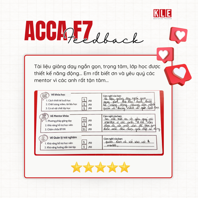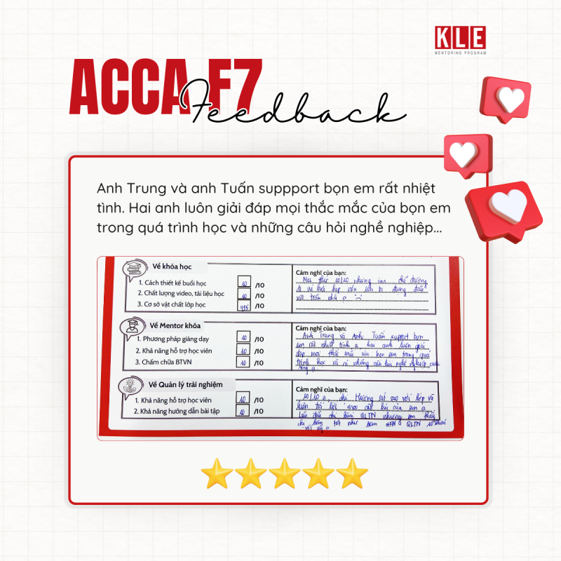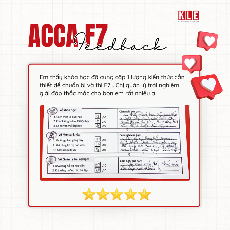 Tại KLE Mentoring Program, các mentees sẽ được đào tạo về Thái độ – Kỹ năng – Kiến thức để trở thành kiểm toán viên phù hợp. Khóa học F7 ACCA hướng đến trang bị cho mentee về phần kiến thức chuyên môn – một yêu cầu căn bản đối với người hành nghề kiểm toán.